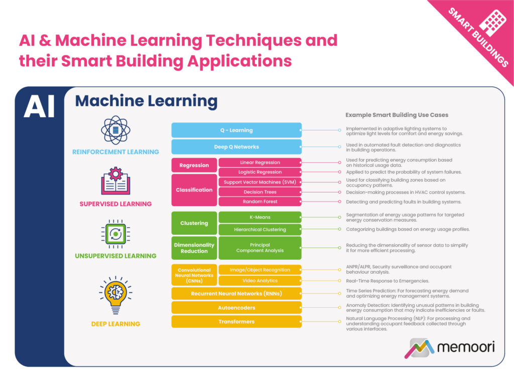 این گزارش موقعیت فعلی ما در مسیر رسیدن به ” ساختمان های شناختی واقعی” را روشن می سازد. طبق بررسی شرکت مموری، تکنولوژی امروز ساختمان های تجاری در حال گذار از قوانین مبتنی بر مدل های یادگیری ماشین پیشگویانه هوش مصنوعی است اما، بکارگیری و استفاده از آن همچنان در سطح متوسط مانده است.